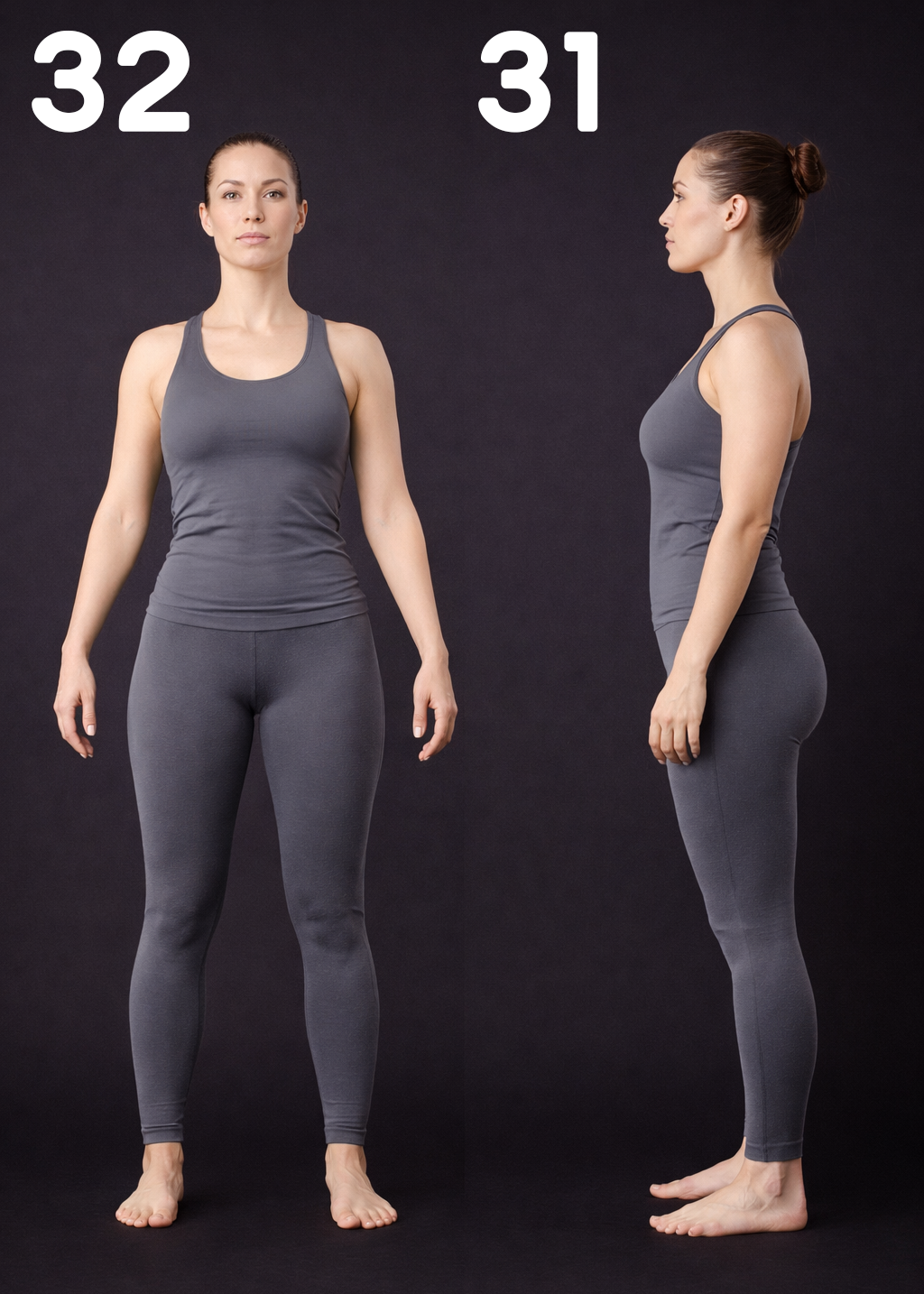 Reference images are applied to correct posture, balance, and orientation while preserving measured dimensions.