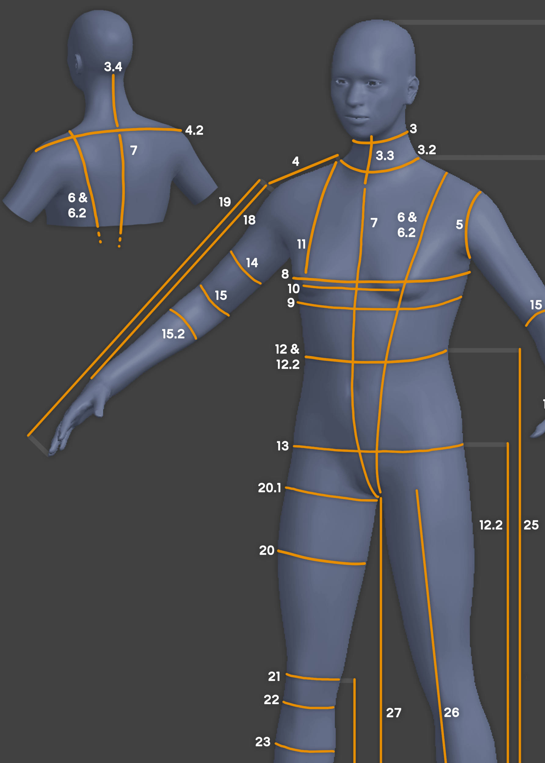 Our suit patterning is driven by a measurement-first digital body pipeline that converts raw biometric data into a verified three-dimensional human reference. Client measurements are normalized and processed through a structured workflow — XLS → JSON → MakeHuman → Rigged Mesh → Blender Measurement & Pattern Environment — allowing proportions, posture, and volume distribution to be resolved before fabrication begins.